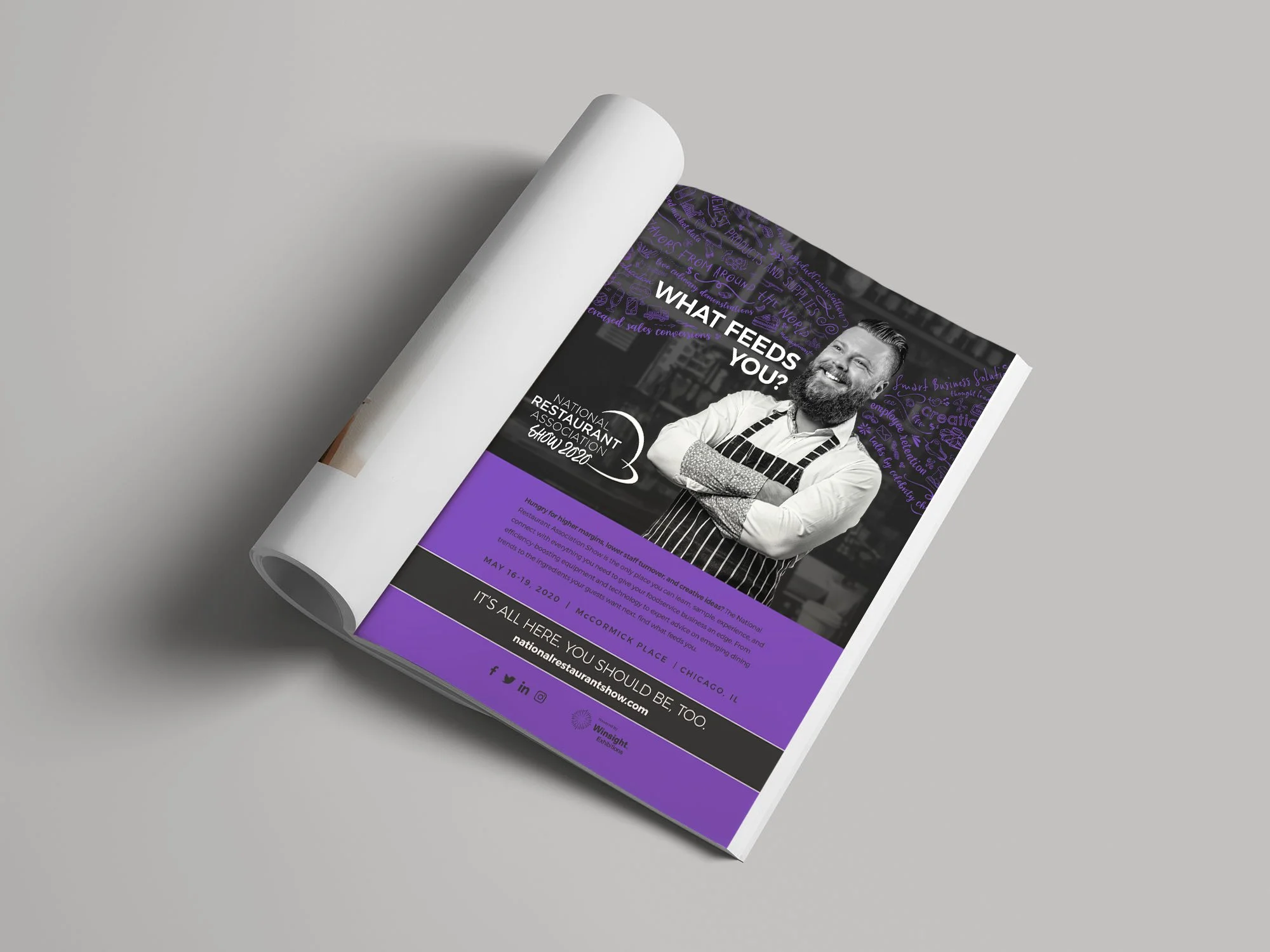 The 2020 campaign concept was centered around the “passion” professionals feel towards their role in the industry. Visually, the imagery highlighted aspects of attendees’ and exhibitors’ careers that bring them joy, speaking to each audience segment and positioning the show as an exciting, sensory event that truly “feeds” them and has what they need to keep their business — their passion — growing. The resulting identity consisted of vibrantly colored typography and drawings flowing around a photo of an industry professional in a black and white environment.